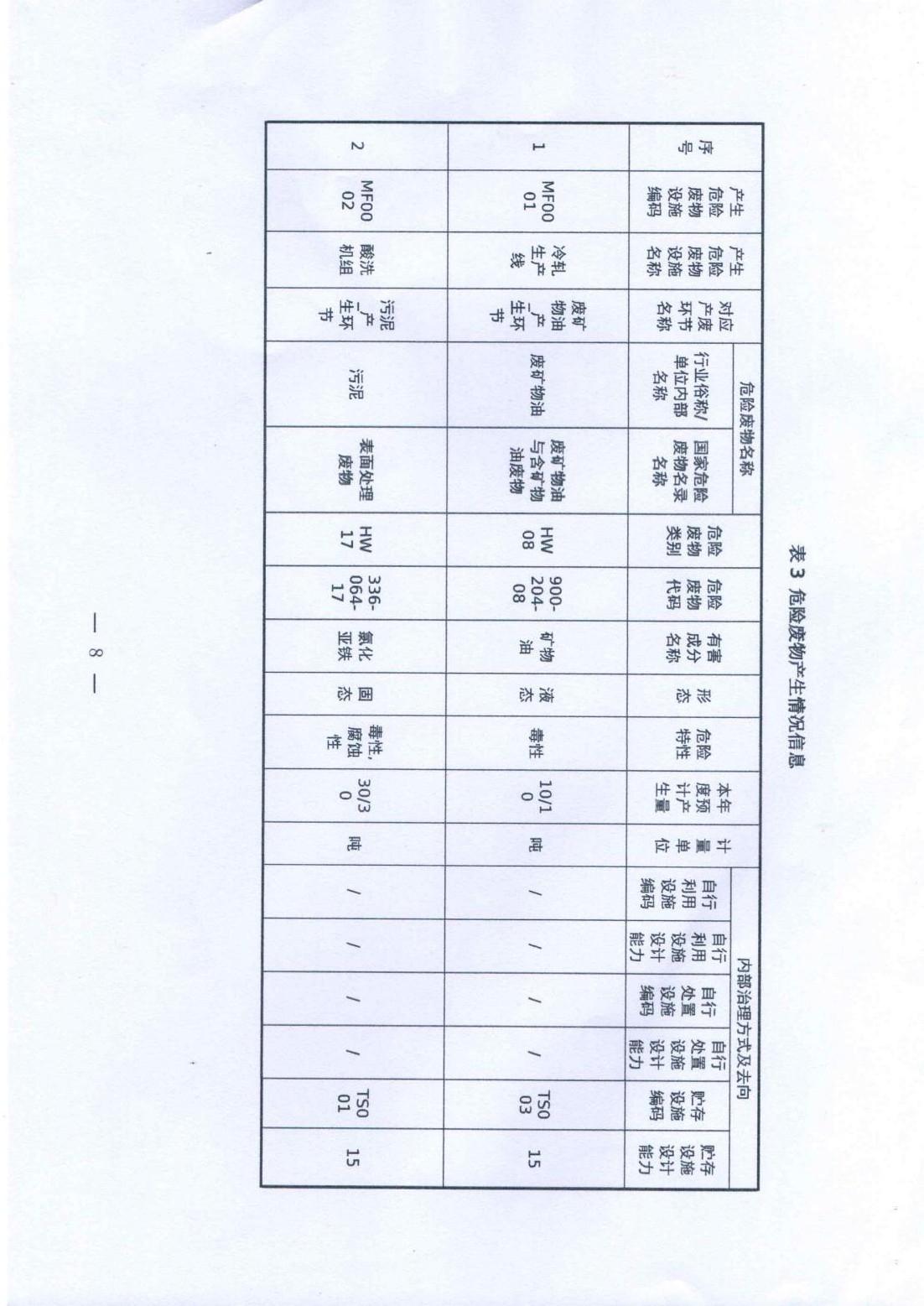 惠州市南钢金属压延有限公司危险废物产生情况信息表(2024)