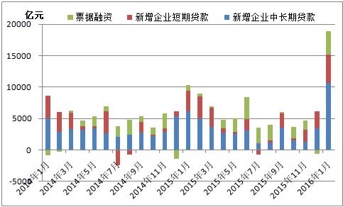 图二:企业中长期贷款、短期贷款、票据融资增量走势
